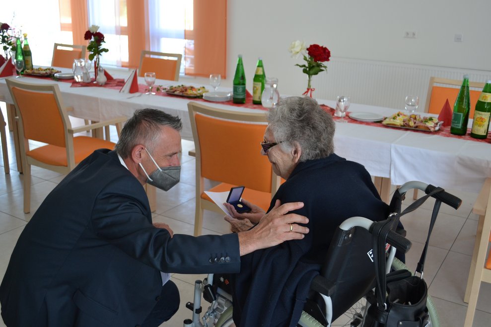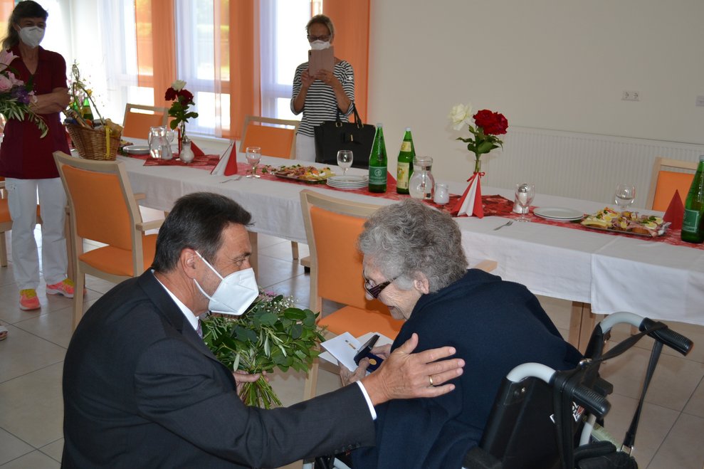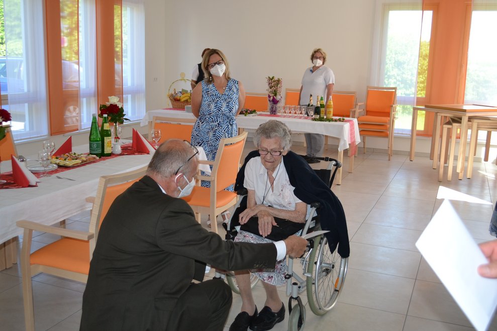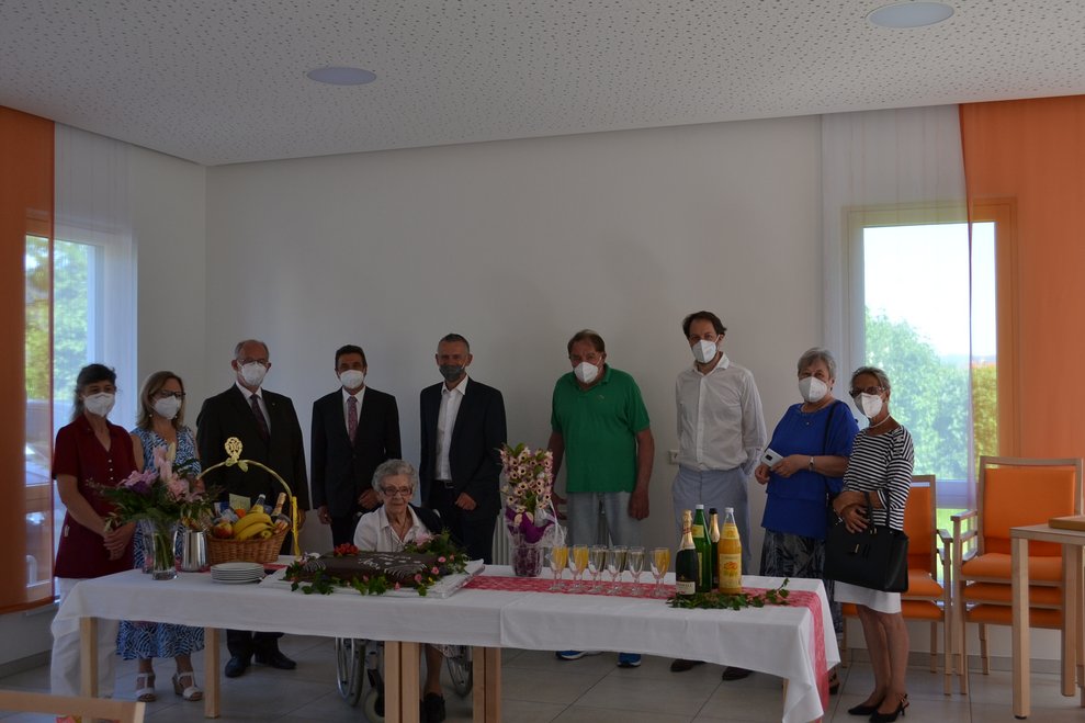 Unsere Bewohnerin Frau Cmyral durfte sich über eine Feier anlässlich ihres 100. Geburtstag freuen
