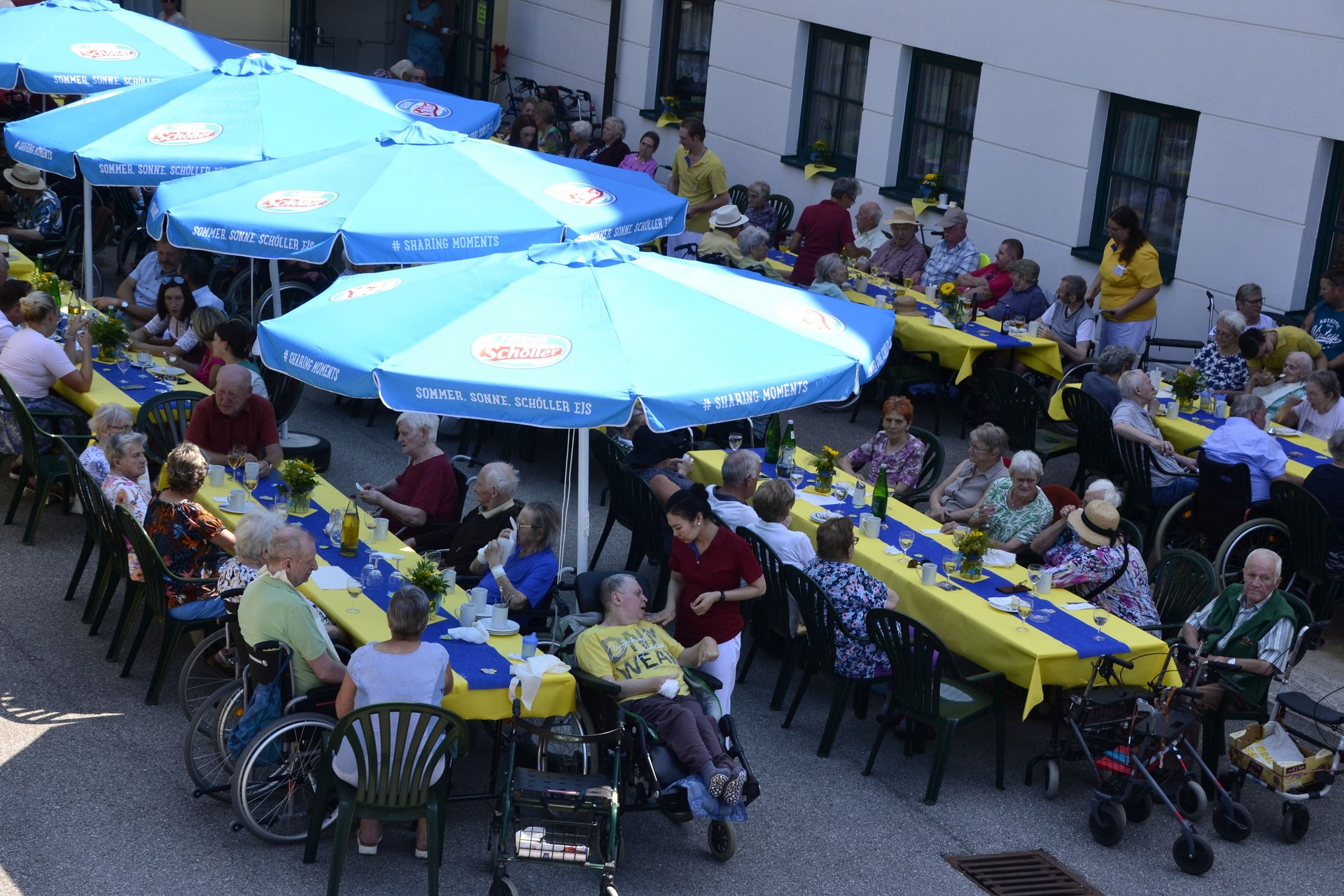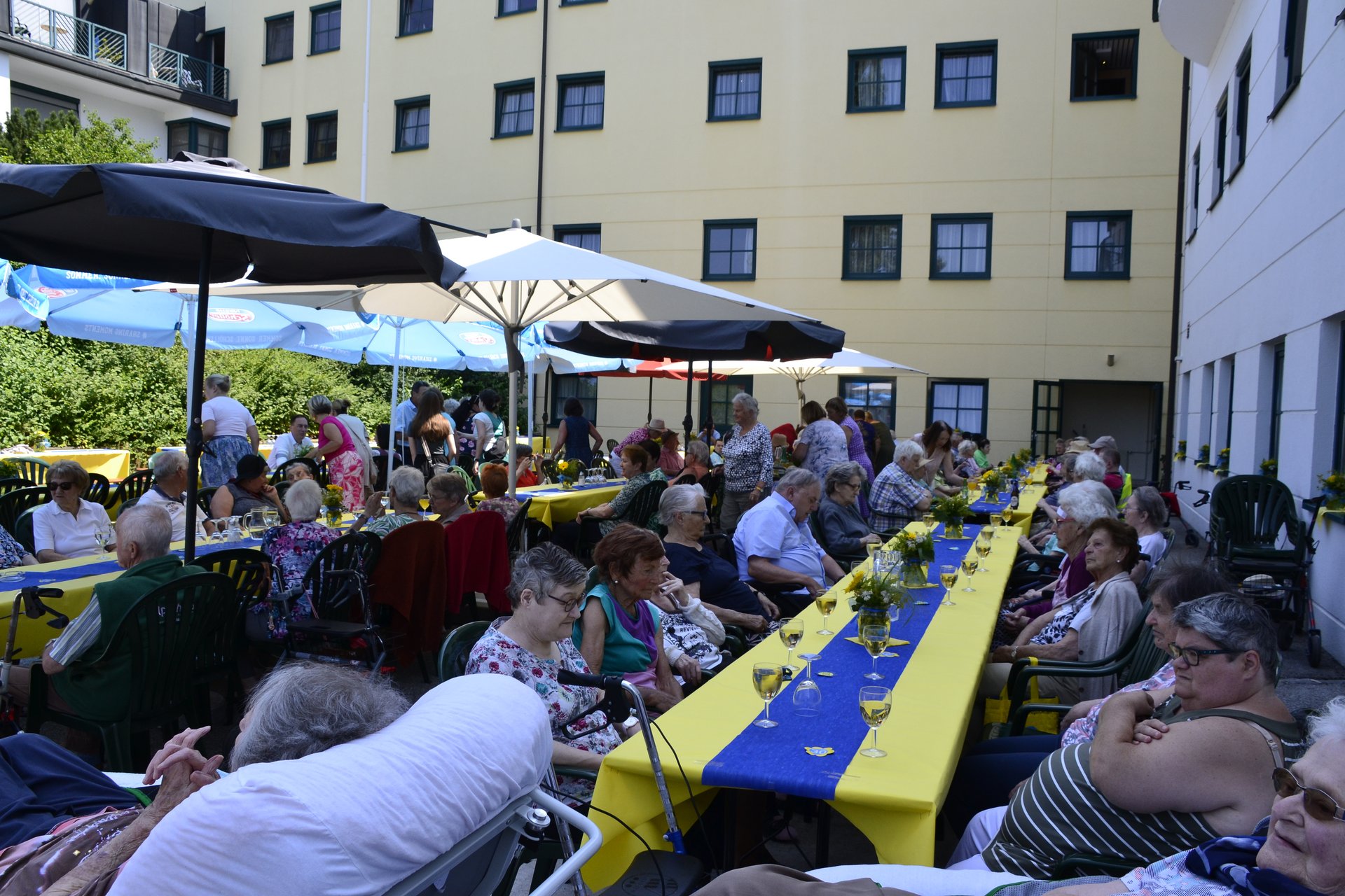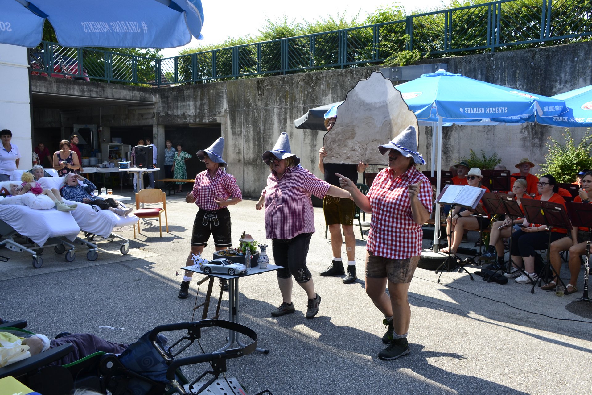Am 5. Juli fand heuer unser 30 Jahr-Jubiläum im Marienheim statt. 1995 zogen wir mit unseren Bewohnerinnen und Bewohnern in Begleitung der Musikkapelle Mank von der Bahnhofstraße in das neue Gebäude um. 30 Jahre später spielte wieder die Musikapelle Mank auf. Bei bestem Wetter und ausgezeichneter Versorgung von unserer Küche konnten alle Bewohnerinnen, Bewohner, Mitarbeiterinnen, Mitarbeiter, ehrenamtliche Mitarbeiterinnen und ehrenamtliche Mitarbeiter sowie die Ehrengäste diesen Tag feiern. Lustige Vorführungen von den Alltagsbegleiterinnen und mutigen Helferinnen sorgten für viel Spaß und Abwechslung.
