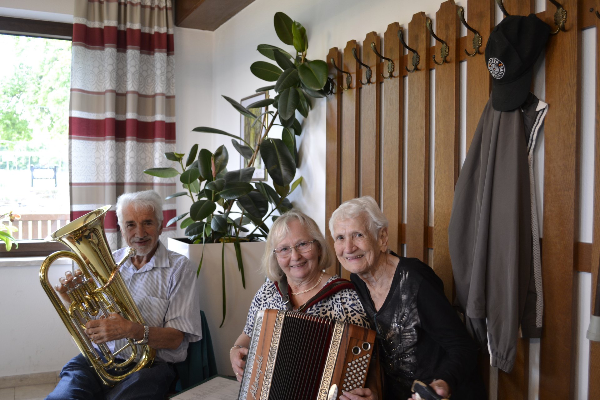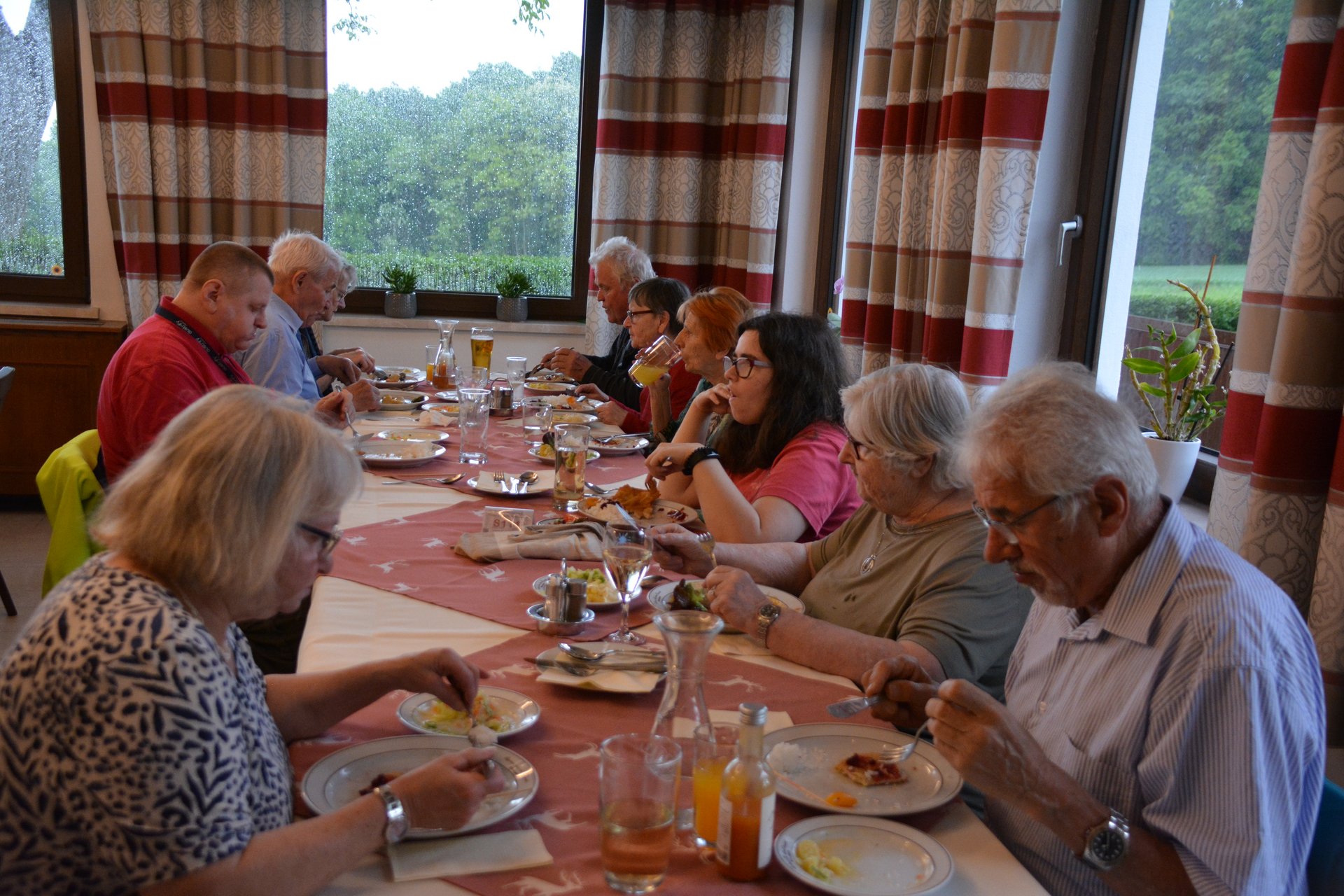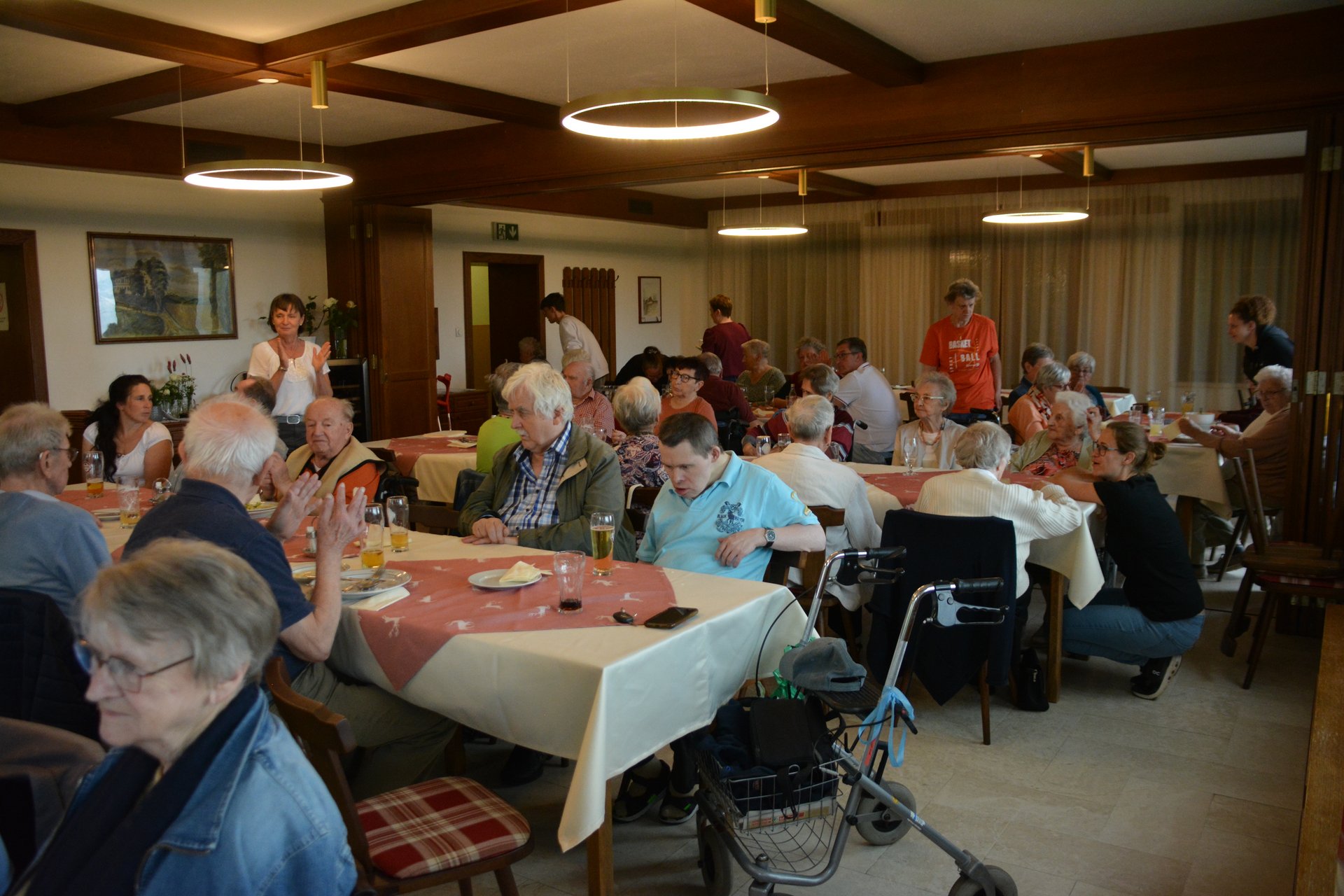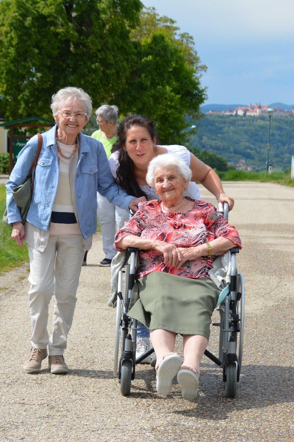 Unser diesjähriger Ausflug mit unseren Bewohnerinnen und Bewohnern führte uns diesmal nach Maria Ellend, einem kleinen Wallfahrtsort zwischen Krems und St. Pölten. Nach dem Mittagessen genossen wir bei einem Spaziergang die wunderschöne Aussicht und besuchten auch die Wallfahrerkapelle, wo wir gemeinsam Marienlieder sangen. Anschließend gab es Kaffee und Mehlspeise. Zur Musik mit Heidi und Franz wurde gesungen und getanzt. Es war ein gelungener Tag.
