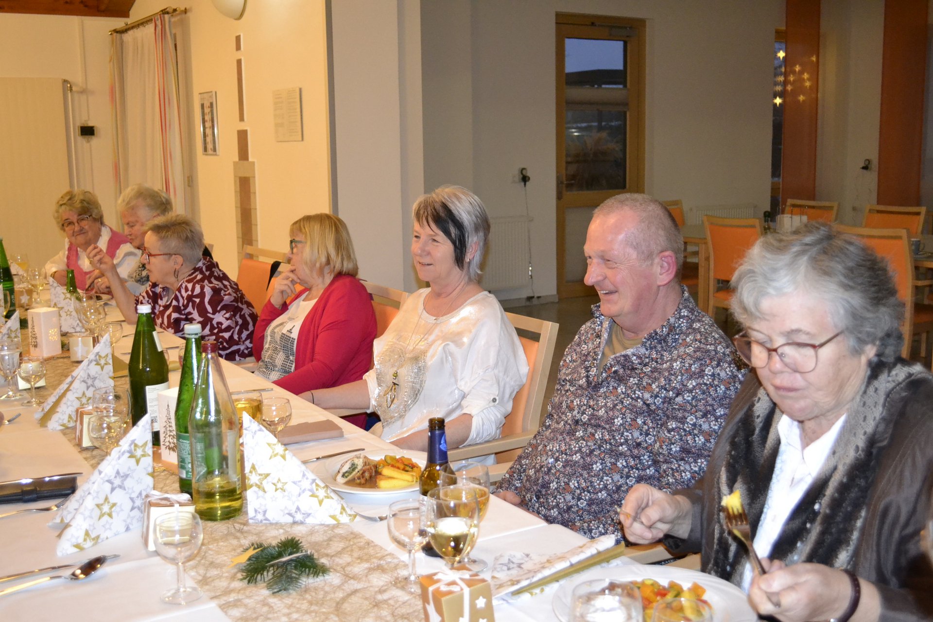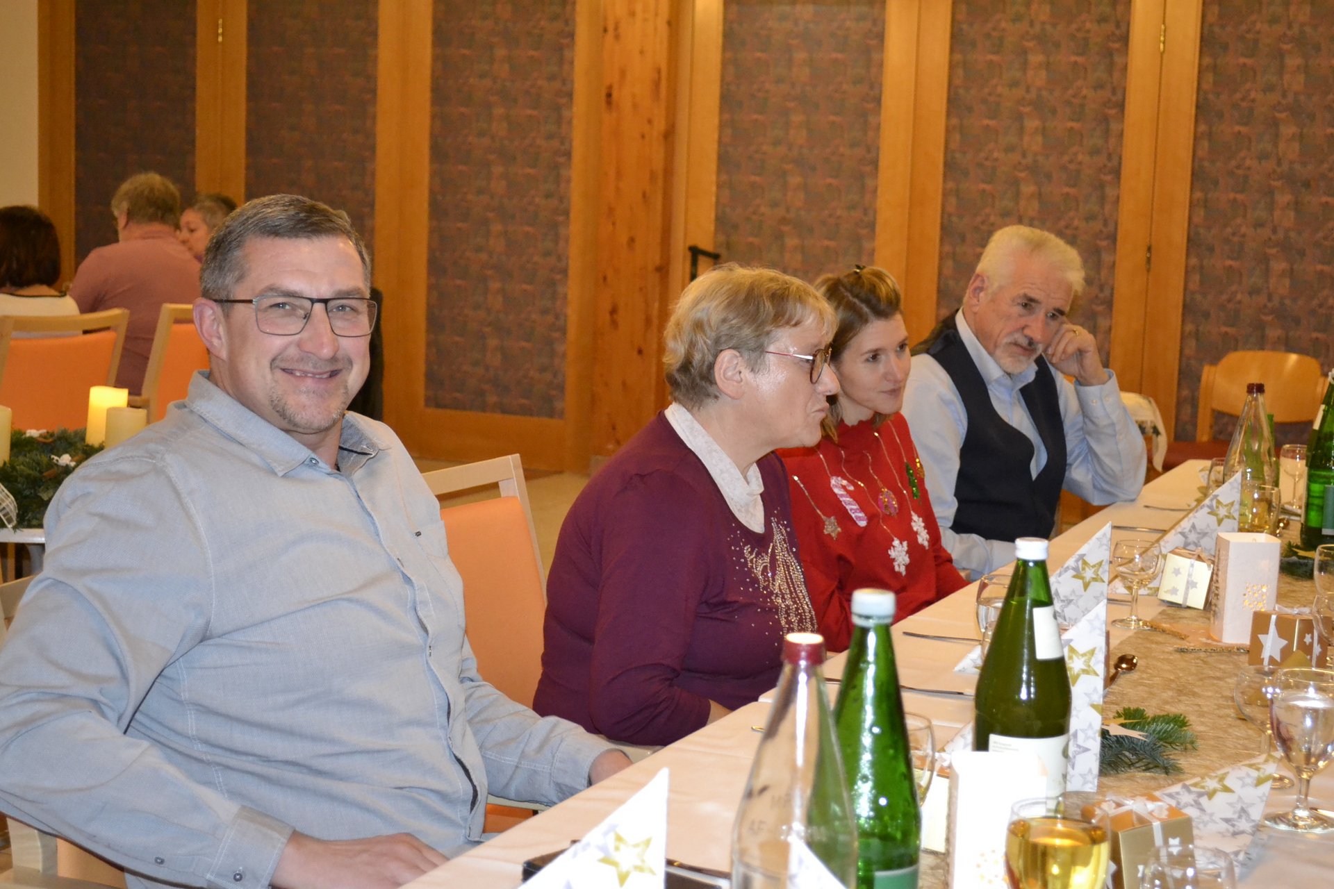 Im festlich geschmückten Saal wurde die Feier mit weihnachtlichen Liedern und Gedichten umrahmt. Anschließend gab es ein festliches drei Gänge Menü. Wir nützen natürlich auch die Gelegenheit, sich gebührend bei ihnen zu bedanken.