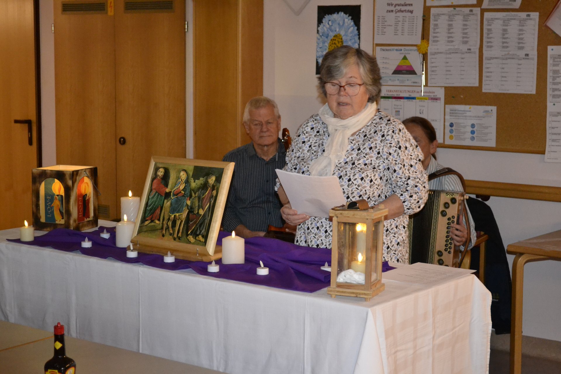 Wir leben in unserem Haus die Bräuche im Jahreskreis, daher wurde auch das Herbergsuchen nicht ausgelassen. Unsere ehrenamtliche Mitarbeiterin Leopoldine Glinz plant immer eine sehr stimmungsvolle Stunde. Musikalisch wurden wir von Roswitha und Franz Maierhofer unterstützt. Zum Ausklang gab es noch Punsch und selbst gemachte Kekse.