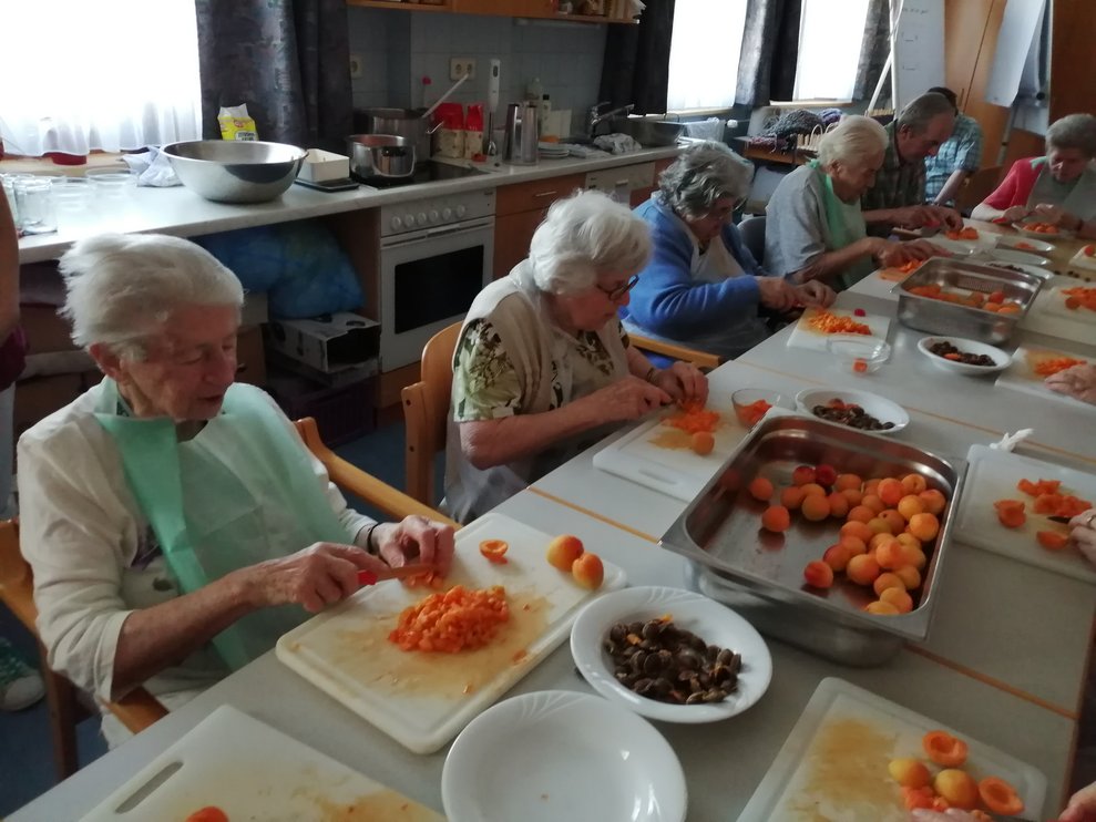 Unsere Bewohner freuen sich über Abwechslung beim Marmelade kochen und helfen tatkräftig mit