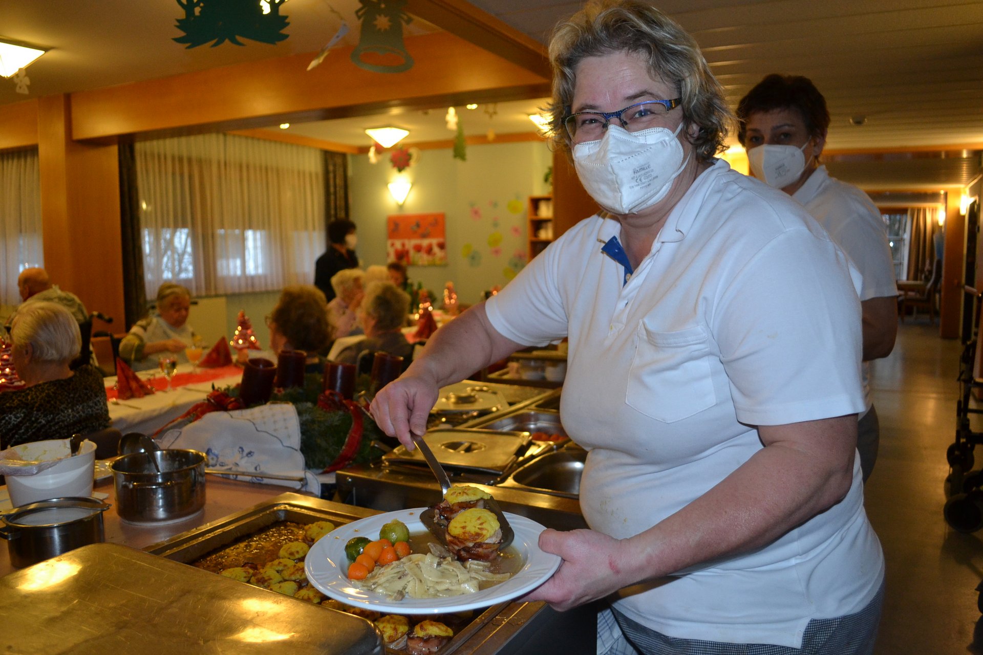 Unsere Heimbewohnerinnen und Heimbewohner durften sich über eine besinnliche Weihnachtsfeier im jeweiligen Wohnbereich freuen. Es wurden Gedichte aufgesagt und Weihnachtslieder gesungen. Ebenso servierte unsere Küche ein richtiges Festmahl.